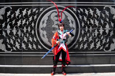 据悉,COSPLAY是英文Costume Play的简写,指利用服装、饰品、道具以及化妆来扮演动漫作品、游戏中的角色。cosplay比较狭义的解释是模仿、装扮虚拟世界的角色,也被称为角色扮演。由此,在网络上衍生出了新的含义,往往被用来形容“假扮某类人的人”。现今的cosplay这一领域是青少年流行文化的主流。视界网 张国荣 摄