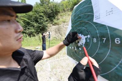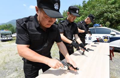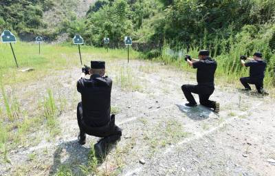 2015年8月9日,保康县公安局民警正顶着烈日、冒着酷暑,在野外进行手枪实弹射击训练。 据了解,参训民警均来自该县公安一线实战部门,将开展为期两周的实弹射击集训,重点进行手枪快速射击、狙击步枪精度射击及不同距离、不同姿势的应用射击,以提高广大民警的实战射击技能。同时,通过酷暑练兵,达到锤炼民警意志,增强公安队伍战斗力的目的。(视界网 欧阳智慧 摄 )