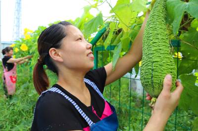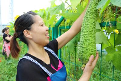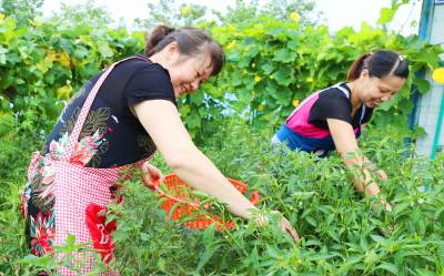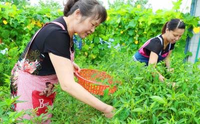 本报荆州讯(通讯员 孟庆虎) 8月9日,中铁大桥局四公司蒙华铁路公安长江大桥项目部食堂工作人员危先荣和工友在工地菜园采摘丝瓜、辣椒。