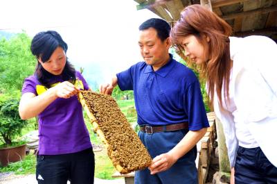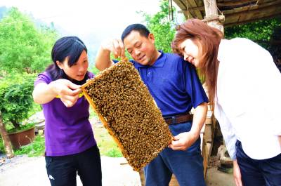 大山中养蜂省力又赚钱5月31日,笔者在恩施市红土乡乌鸦坝村看到,嗡嗡的蜜蜂声中,两手提着蜂框的人正在观察蜜蜂,他就是当地小有名气的养蜂大王邓光灼。”闲时养蜂,一不花本钱,二不费劳力,蜂糖销路好,容易赚钱,很实惠。”邓光灼说,他今年养了16桶蜂,可赚2万元左右。目前,他准备再造10个蜂桶,等蜜蜂”分家”后,组织现有的20多户组建养蜂专业合作社,规范养蜂户行为。邓光灼高兴地说:”只要把山林保护好,山上的蜜源是取之不尽的,养蜂业将成为农民增收致富的新兴产业。”同时倡导村民营造和保护蜜源,要加强有机农业的宣传力度,提高人们食品安全和环境意识。可以更多地向社会提供纯天然无污染的有机食品,满足人们的需要。(视界网签约摄影师彭绍峰摄)红土乡政