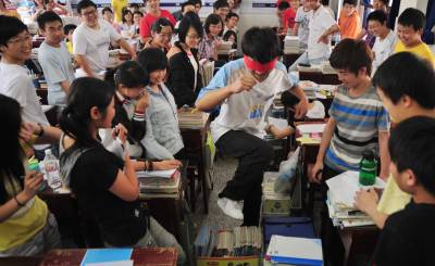 2010年高考已进入倒计时,湖北省恩施州恩施高中举办趣味运动会、跨越障碍游戏等多种活动为考生”减压”,让学生以良好的心态迎接高考。