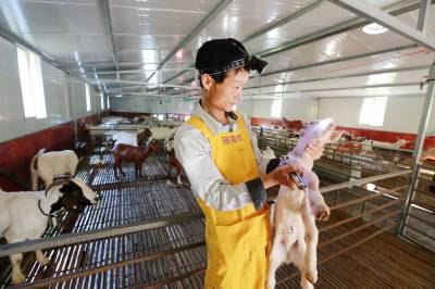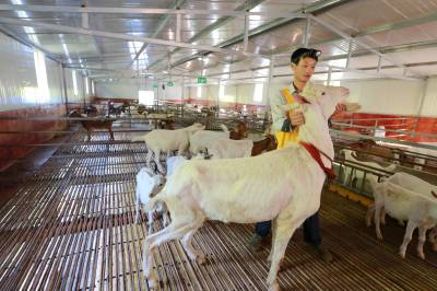 8月11日,竹山县擂鼓镇西河村世外桃园农民养殖专业合作社养殖大户张修平正在检查山羊身体状况。近年来,该县畜牧部门科学规划,因地制宜大力发展养殖业,探索出“龙头企业+基地+专业合作社+农户”的运作模式,基本实现了品种优良化、养殖规模化、生产标准化、经营产业化、防疫网络化、服务社会化的目标。目前,全县畜牧养殖业总产值达到8亿余元,有效促进了农民增收致富。
