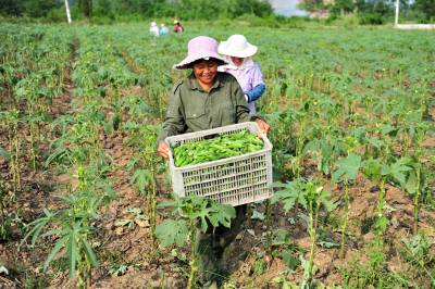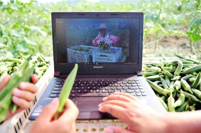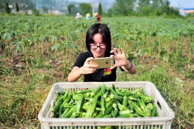 2015年8月11日,宜昌市夷陵区鸦鹊岭镇新场村生态农业园蔬菜基地的黄秋葵成熟上市,当地“玩转宜昌”、“魅力夷陵”的新媒体工作人员走进蔬菜基地,现场采编并发布微博、微信图文消息,为蔬菜推销搭建平台,助推农产品走进“互联网+”的销售快车道。