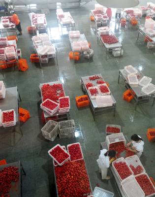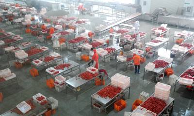 8月12日,屈姑食品公司的员工们正在加紧生产去皮整番茄和去皮碎番茄。