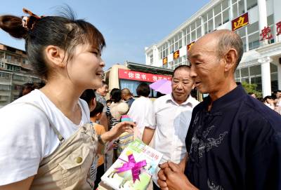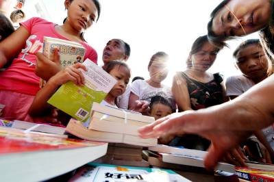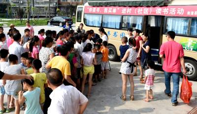 2015年8月13日上午,湖北省南漳县文体新局的流动图书车开进了该县城关镇文峰塔社区。他们以“你读书,我买单”走进社区读书活动为主题,免费为社区居民送去科普书籍,为社区孩子们送去课外读物。
