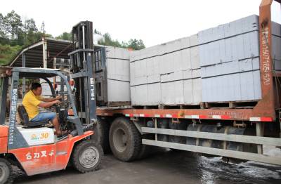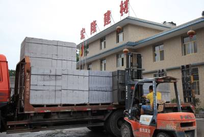 8月12日,咸丰县宏隆建材生产的蒸压砂加气砼砌块整装待发。这种俗称“蒸压砖”的建筑材料,是由钙质石材与硅质石材配料加入铝粉作加气剂,经加水搅拌、浇注成型、发气膨胀、预养切割,再通过高压蒸汽养护而成的多孔硅酸盐砌块,具有保温、隔热、隔音、低炭环保等特点,市场前景看好;而在素有“中国武陵石材之都”称号的咸丰县,多个大理石和砂岩生产企业的边脚废料正好富含二氧化硅、碳酸钙等成份。宏隆建材就地取材,变废为宝,让近十万吨锯泥等石材边脚废料成了香饽饽,从而实现环保、企业双赢。