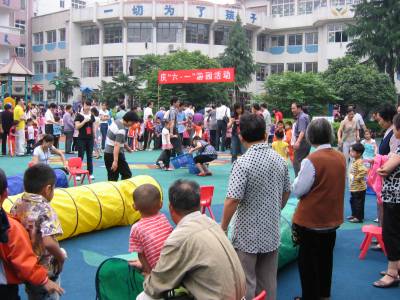 《亲子运动庆六一》6月1日,云梦县试验幼儿园举行庆”六一”亲子游园活动,由孩子爸爸妈妈或者爷爷奶奶同孩子一同活动,有的参加一起包饺子,有的参加一起吹乒乓球等十余项亲子运动,受到孩子和家长的欢迎。孩子们在充满父母之爱的活动中,度过了一个愉快的节日。