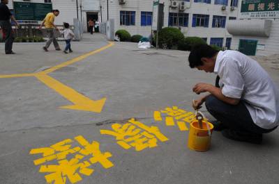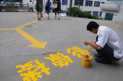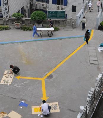 脚下多条引导线患者就诊更方便5月31日下午,宜昌市中心人民医院内,两名工人正在地面用油漆画出就诊引导线。日前该院将诊疗科室按区域划分成内科、外科、检查三大类,用黄、绿、蓝三种颜色的油漆在地面画出引导线分别区分标识,患者就诊时只需按照相应的引导线行走,就可找到目的地,就诊更加方便。宜昌市中心人民医院但军摄