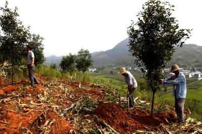 8月13日,造林专业施工队在竹山县宝丰镇花栗树焦家包栽植红叶石楠。为加快推进“绿满竹山”和“内修人文,外修生态”工程,竹山县探索推行了“公司专业造林模式”,“四季挖窝、三季栽树、分段验收、分期付款、包栽包活”的做法,扎实开展道路绿化、山体绿化、庭院绿化、景观绿化、园区绿化、河堤绿化,实现地绿、山绿、路绿、园绿、河绿、院绿全覆盖,体现区域内良好的生态环境。今年该县已完成造林绿化4.1万亩。(视界网程平摄影) 地址:竹山县林业局 电话:13872773800 邮编:442200