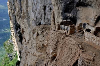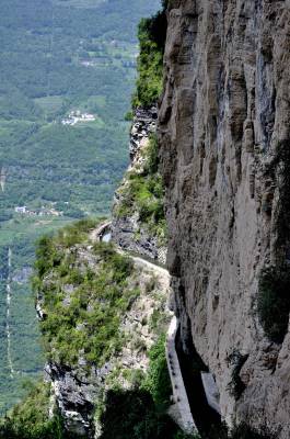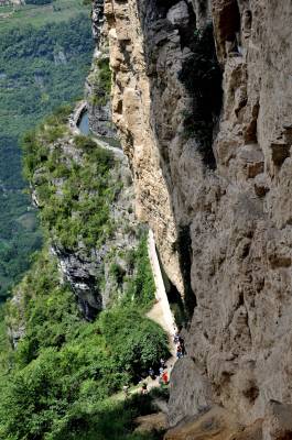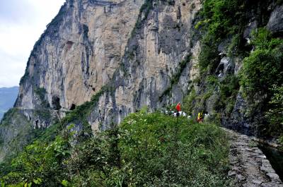 “绝壁天河”—巴东“红旗渠”地处深山海拔千米的悬崖峭壁之间,是一条人工开凿的水渠,这条犹如挂在绝壁上的“天河”,被人们称为鄂西深山中的“红旗渠”。这条人工开凿的灌渠全长28公里,其中巴东境内25公里,从水布垭高山淡水湖泊水流坪引水,经过四面绝壁的三里城直至宜昌长阳边界。该渠于1966年11月开始修建历时12年建成,1978年12月灌渠输水。水渠宽约2米宽,紧贴峭壁,依山就势,蜿蜒数十公里。目前,这条绝壁天河仍清流涓涓,水流不息,滋养着沿线的村落人家。