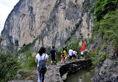 巴东:探秘绝壁天河,让“红旗”精神永飘扬 8月9日,一批城区党员干部及家属、退休干部和大中小学生利用双休日,自费结伴来到来到位于湖北省巴东县清太坪镇和水布垭镇境内的磨刀河大峡谷,探秘绝壁天河,领略巴东“红旗渠”背后的传奇故事,接受思想教育和改造。
