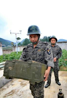 “全村的强劳动力都走完了,我不能走,我不能走的原因有两条:一是我家兄弟姐妹种烟70多亩靠‘天’收,不能没人管;相邻三个镇有一门‘三七’高炮,保护二三十个村的3000多亩烟叶,不能没人管!我想借助气象科技发展烟叶,照顾父老乡亲,比外出打工好!”黄春生这一语道破“天”机。把时光倒回八年,黄春生才25岁,尽职尽责,观风测雨,管天为民,控制住了所在乡村冰雹的频繁发生,确保了当地群众烟叶、稻米、蔬菜、玉米、葡萄等支柱产业和农作物没有受到冰雹灾害。黄春生的执着和成效感动了在外务工的妻子李春艳,去年春节毅然决定加入红庙防雹增雨工作站,穿上了工作站统一配发的迷彩服,干起了向天借雨、对天消雹的辛苦工作,工作之余还担负起给工作站的后勤保障任务,即洗衣、做饭、卫生等等,工作站除了夫妻俩,还有一个同伴文利祝。