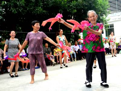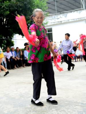 8月16日,来凤县革勒车镇令家界农民舞蹈队80岁的姚子云与队员们一道,在中心福利院为院民们唱歌、跳舞送欢乐。令家界农民舞蹈队成立于2013年,共有队员30余人。姚子云虽已80岁高龄,但她仍坚持天天到场参加演出,是队里的活跃分子。