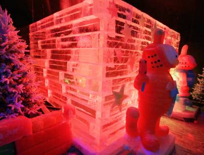 8月18日,应湖北保元置业发展有限公司邀请,我们一批武穴摄影爱好者到坐落在武穴市凤凰路保元商博城冰雕馆参观,一进大铁门,就像大热天吞下了一大块冰淇淋,有一股从头凉到脚的感觉,我们连忙换上随身带来的羽绒服、棉裤,只见里面各种冰雕造型神情各异,有点憨态可掬,有的形象逼真!这里有埃菲尔铁塔,这里有北国冰长城--且不说又让我们回想到儿童时代面对漫天飞舞的鹅毛大雪乐不思蜀,零下10度的冷气又像是让我们回到了叫人留恋的冬天----视界网冯怡红摄