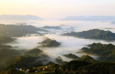 大茅坡云海,高高的峰峦耸立在波涛之上,犹如千军万马出征、浩浩荡荡、气势磅礴……