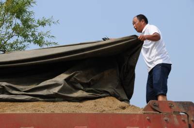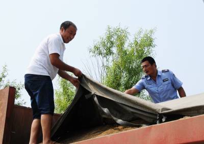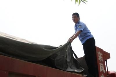 8月19日, 十堰市郧阳区执法局柳陂分局执法人员正在环湖路检查河沙运输车辆,对漏撤运输和不覆盖运输责令当场整改,对屡教不改的漏撤司机预从处罚,以保障水源区旅游公路洁净畅通。郧阳区汉江段是市区建设河沙运输和山沙运输的原产地,每天24小时有数百台车次往返运输,严管漏撤运输是保障文明卫生和生态环境的主要工作内容。 视界网周家山 摄