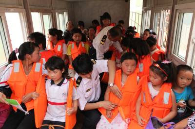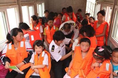 竹山县力保水上交通安全 8月19日,竹山县地方海事局工作人员在该县上庸镇渡口渡船上检查学生穿戴救生衣情况。连日来,竹山县成立水上安全检查专班,对管辖水域内的渡口安全防护设施,渡船船体机械设备运转,消防救生设备配置,驾驶人员操作规程等进行专项检查,全面防范安全事故的发生,力保水上安全形势持续稳定。(视界网 章磊 摄)