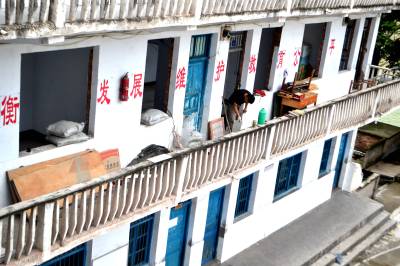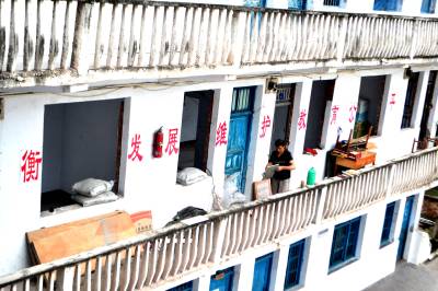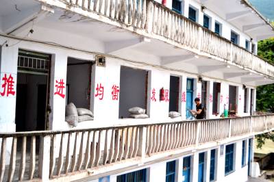 21日,工人正在对巴东县官渡口镇东坡小学教师住房进行改造。 官渡口镇农村学校大多为上世纪80年代修建的砖混结构综合楼,经风雨浸蚀,房屋渗漏严重,墙体风化裂缝,门窗老化脱落。为解决教师住房条件,国家下拨农村教师住房改造专项资金,对单套周转房面积在40至50平米的一室一厨一卫或两室一厨一卫户型进行装修。 据悉,该镇今年暑期争取30余万元专项资金对农村三所学校的教师住房进行改造,预计8月底全部完工,35名农村老师受益。本报视界网向国大摄 手机15272253306