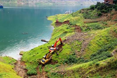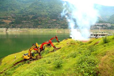 香溪长江公路大桥是一个由多座特大型桥梁、隧道及大型滑坡处置组成的项目群,香溪长江和香溪河两座大型桥梁由中铁大桥局第七工程有限公司承建,其中香溪河大桥五号桥墩属涉水工程,桥墩位于三峡水库175米水位线以下,三峡水库每年9月下旬开始蓄水至175米,如不在蓄水前将作业平台建起,将会影响半年的工期。为此,中铁大桥局第七公司项目经理部精心组织,打紧安排,抽调精兵强将,调集三台反铲,进驻五号桥墩施工现场,与时间赛跑,与水位赛跑,及时搭建作业平台。与此同时,秭归县归州镇、村两级征地专班快速反应,优质服务,及时做通临时占地用户的工作,为大型机械设备进场提供了可靠保障。