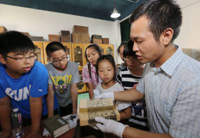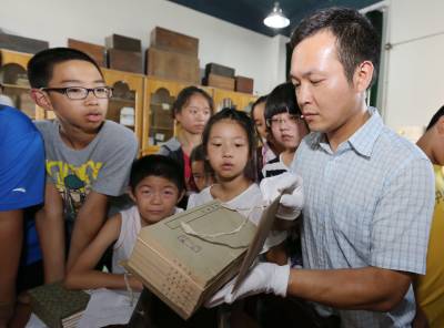 8月21日,襄阳市图书馆开专车,接来了高新区刘集学校近50名留守儿童,前往图书馆品读书香。当日,图书馆工作人员带领孩子们参观了图书馆,并介绍古籍知识,带孩子们查看收藏的古籍。 (视界网杨东摄)