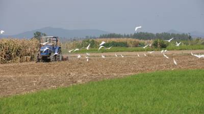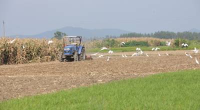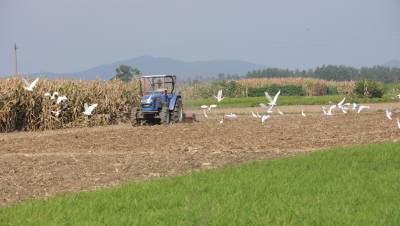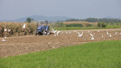 8月23日,湖北省襄阳市襄城区欧庙镇农民在田间耕作。 当日迎来二十四节气中的“处暑”,湖北省襄阳市水稻、玉米、花生等农作物陆续进入成熟期,农民加紧采摘,到处是一派丰收景象。