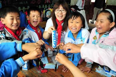 2010年6月1日,飞利浦照明有限公司”2010牵手健康爱心活动”在三峡工程坝区门户镇——湖北省宜昌市夷陵区乐天溪镇陈家冲飞利浦希望小学举行,飞利浦照明有限公司当场向该校捐赠日光灯170盏。来自该公司的22名志愿者走进三峡移民小朋友的身边,讲授健康运动知识,传播健康学习理念,一起互动游戏,派发太阳能小电筒、万花筒等节日礼物,共庆”六一”儿童节。陈家冲小学是飞利浦公司对口支援共建单位,该校的科技楼由飞利浦公司2001年援建。本报视界网张国荣摄