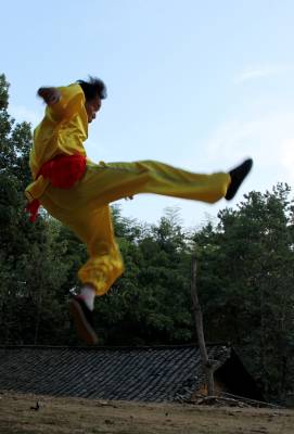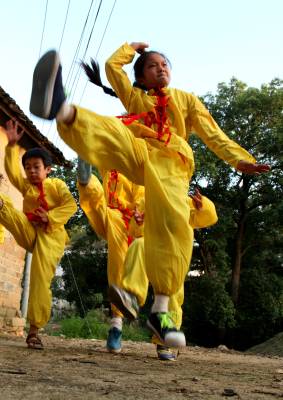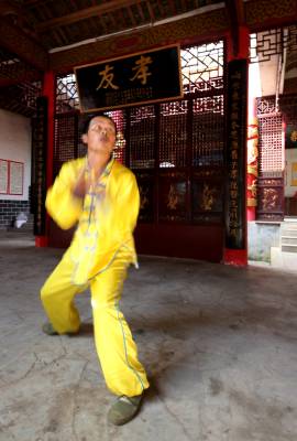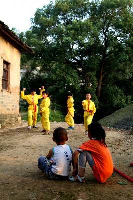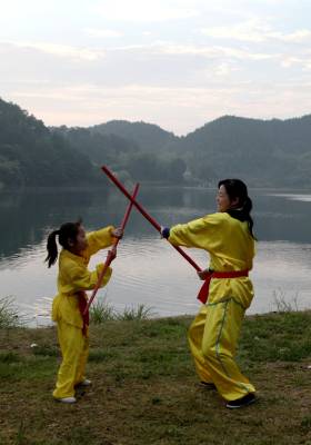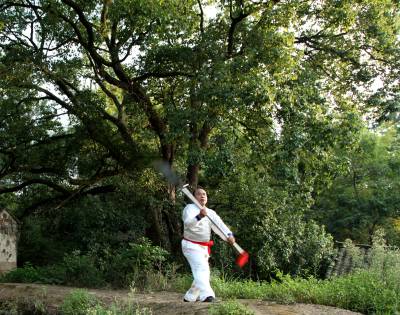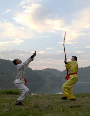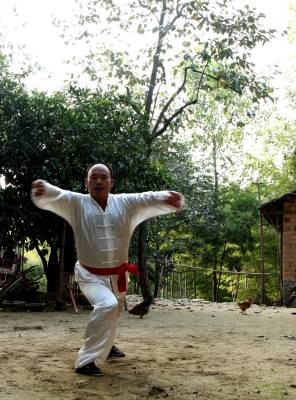 在如今市场经济浪潮浸袭下,团风县大崎山遥相对应的小崎山脚下,依然活跃着一群不为名、不图利、甚至将个人低薄的劳动收入无私奉献给民间武术传承的汉子们。8月下旬的一个周末,我们专程去探访了这群尚不为人知的农家汉子。