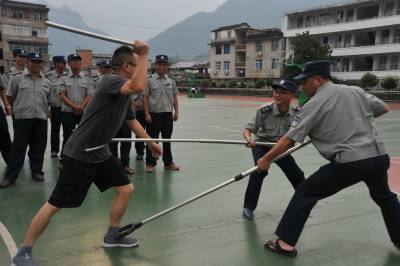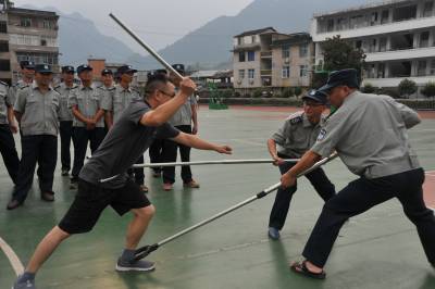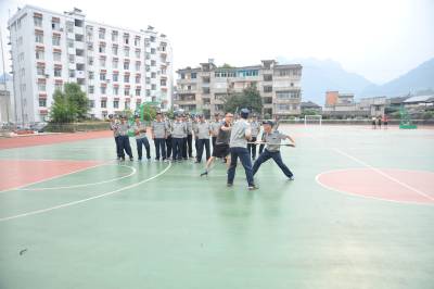 8月24日,鹤峰县实验中学操场,56名校园专职保安正在开展防暴演练。 开学临近,该县组织学校保安开展为期5天的岗位技能培训。培训内容包括校园安保相关法律知识,防暴反恐、消防安全应急演练处置等项目。进一步提升校园保安员的业务水平和专业技能,增强校园保安的安全意识和安全防范能力,增加校园安全保障系数,着力打造平安和谐校园。