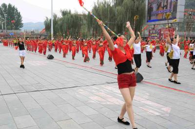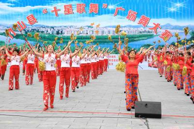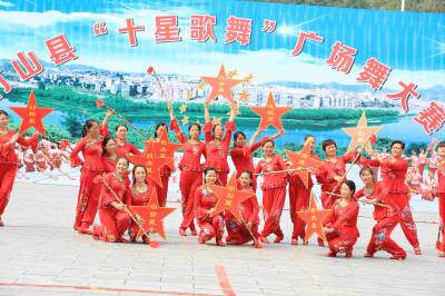 8月25日,竹山县城关堵河广场,欢歌笑语,彩衣蹁跹,现代广场舞《十星歌舞》展演,拉开竹山县“十星歌舞” 广场舞首场大赛帷幕。当日,竹山县委宣传部、县妇联、团县委联合举办的“十星歌舞” 广场舞大赛,来自县直部门、文化艺术团1000多人组成的12支代表队参加首场大赛。这次大赛以“十星文化”为主要元素,以独具新意的表演形式,反映竹山十星文化的特色和内涵,倡导文明新风尚。近几年来,该县积极开展群众文体活动,组建了舞蹈队、乒乓球队、兰球队、足球队、秧歌队等,各项文体活动开展得有声有色,受到群众的一直欢迎。