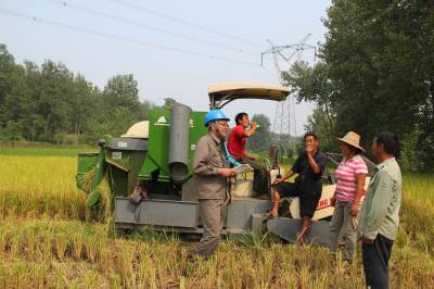 线下宣讲防外破 8月25日,国网谷城县供电公司员工正在茨河镇下磨石村高压电力线路下,向用农机收获早熟稻谷的机手、农民宣讲防外破知识,提醒注意事项。该公司在全县开展的彻查安全隐患活动中,坚持“全面、全员、全过程、全方位”,不留任何死角、盲区,提升安全水平。 视界网马明刚摄