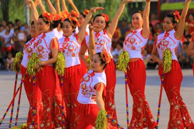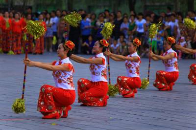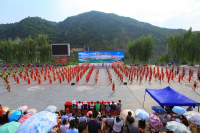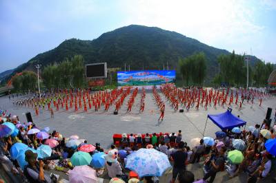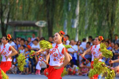 8月25日,竹山县城关镇堵河广场,参赛队员在表演《十星歌舞》广场舞。当日,竹山县举办《十星歌舞》广场舞大赛,来自县直部门12支代表队参加比赛。近年来,竹山县致力推广大众化体育活动项目,广场舞因受众面广、方便易学、形式美观深受广大群众喜爱。据了解,《十星歌舞》是以竹山“十星”文化为背景而量身定做的歌曲《十星歌》为素材,融入竹山高腔、堵河民歌、竹山牌子锣、堵河号子、彩船歌等元素,以独具新意的表演形式,反映竹山十星文化的特色和内涵,倡导文明新风尚。(视界网 章磊 摄)