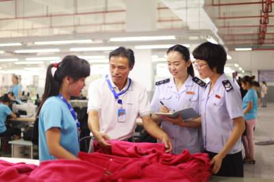 8月26日,竹山县国税局征管工作人员在该县嘉麟杰服饰有限公司了解服装生产、销售情况。竹山嘉麟杰服饰有限公司是上海嘉麟杰纺织品股份有限公司全资子公司,加工服装主要出口欧美、日本等地。