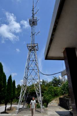 在三峡库区湖北秭归县茅坪镇罗家村,有一个建在高山之巅的地面微波站。站在海拔达1450米的高处,正好可以鸟瞰举世闻名的三峡大坝,这个站就是税家包微波站,主要肩负着宜昌市范围内的广播电视信号地面接收、中转和传输的重任,服务对象涉及夷陵区、秭归县、兴山县、点军区等地的群众,其中仅秭归县的三峡移民就超过10万人以上。