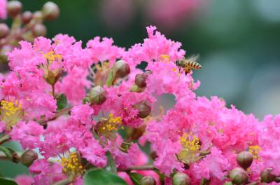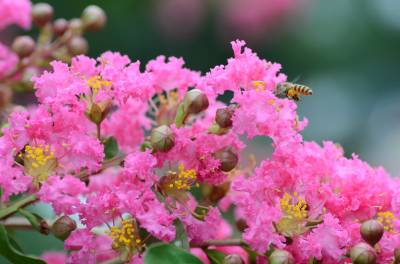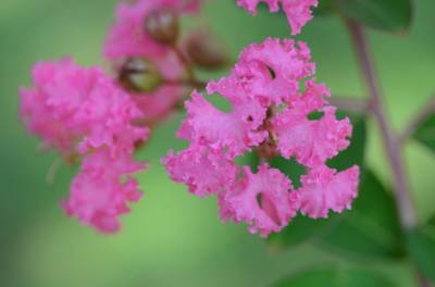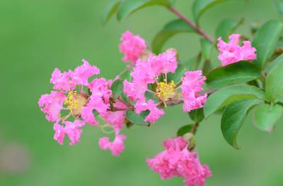 紫薇,别名:痒痒花、痒痒树、紫金花、紫兰花、蚊子花、西洋水杨梅、百日红、无皮树. 千屈菜科、紫薇属落叶灌木或小乔木,高可达7米;树皮平滑,灰色或灰褐色;枝干多扭曲,小枝纤细,叶互生或有时对生,纸质,椭圆形、阔矩圆形或倒卵形,幼时绿色至黄色,成熟时或干燥时呈紫黑色,室背开裂;种子有翅,长约8毫米。花期6-9月,果期9-12月。紫薇树姿优美,树干光滑洁净,花色艳丽;开花时正当夏秋少花季节,花期长,故有“百日红”之称,又有“盛夏绿遮眼,此花红满堂”的赞语,是观花、观干、观根的盆景良材;根、皮、叶、花皆可入药。