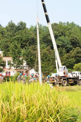谷城供电公司惠民生不遗余力 8月26日,国网谷城县供电公司员工正在石龙沟村立杆架线,改造低电压。为加快低电压改造进程,该公司举全力推进这一惠民工程。目前,全县12个乡镇、开发区,50多个村低电压改造正在如火如荼的进行。 视界网马明刚摄