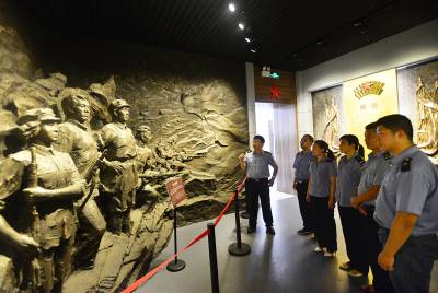 为纪念中国人民抗日战争暨世界反法西斯战争胜利70周年,引导党团员铭记抗战历史、缅怀先烈事迹,大力弘扬爱国主义精神和伟大的抗战精神,武汉铁路局麻城车务段党委组织党团员和青年职工参观了鄂豫皖苏区首府革命博物馆,重温了入党誓词,铭记抗战历史,缅怀革命烈士。