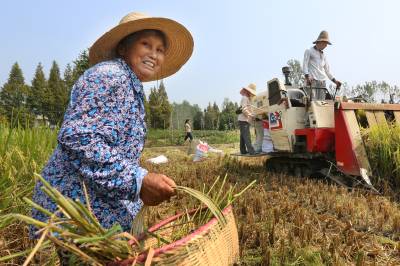 【农忙不再忙 农机帮大忙】 30日,新洲区旧街梅河村,一个小时不到,王大娘家3亩稻谷由收割机轻松搞定,每亩只花一百元。眼下正是农忙“双抢”季节,新洲区15家农机服务合作社的300余台收割机,活跃在乡村田间地头,为农民上门服务,全区16万亩中稻全部实现机械收割。 视界网 邱新明 摄 单位及地址:武汉市新洲区委宣传部 邮编:430400 电话:13207146140