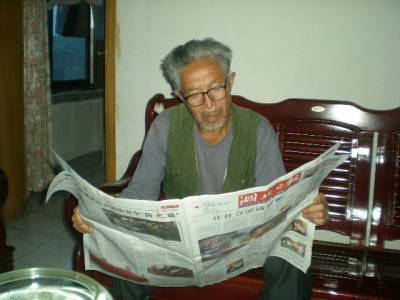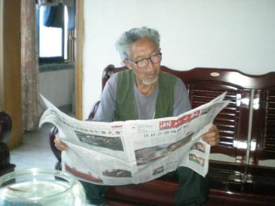 看党报是具有44年党龄、老支书罗福安的老习惯,要看党报,做党报志愿者是老人的心愿。为了满足老党员的心愿,竹溪县龙坝乡党委书记李晋在荆楚网看到《老人做寿”生日”不收礼要收只收”党报刊”》的消息后,就安排”专人”每两天为老人送去心爱的《湖北日报》。下图是老人收到后认真阅读党报的情景。视界网签约摄影师罗立政摄。