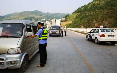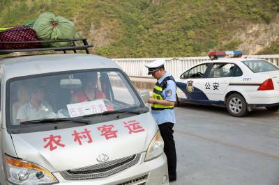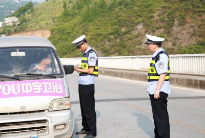 交警护学 巴东县每到开学之际,政府组织专班维护学生上学交通安全。各寄宿制学校临近公路每千米处就有公安派出所设交警岗查处违规运送学生的车辆。图为31日几名交警正在巴东县官渡口镇神农溪大桥检查运送学生报名的车辆。(视界网穆世祝摄)通联:巴东县官渡口镇中心学校(444309)15335850858