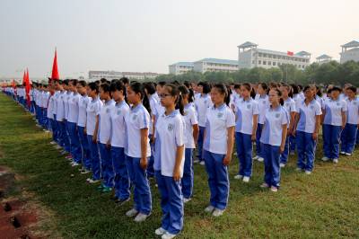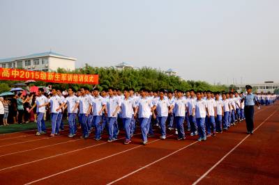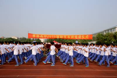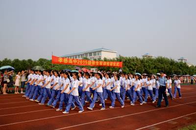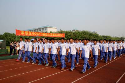 2015年8月31日,孝感高中的1400名新生进行了军事训练汇报表演。今年是中国人民抗日战争暨世界人民反法西斯战争胜利70周年,今年的军训具有特别的意义。孝感高中的新生从8月24日起,进行了为期8天的军训。通过军训,同学们虽然流了不少汗,脸晒黑了,但增强了国防观念,磨练了意志,达到了军训的预期目的。(祝大桥 摄)