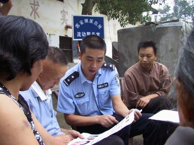 足不出村在家门口就可以办理身份证等证件;不用花一分钱就能享受送上门的法律服务;不等侵害上身就有”治安预报”提前为防范支招……在秭归县的广袤农村,与百姓相约在村头的流动警务室,集”便民服务”、”防范打击”、”信息收集”等多功能于一体,成为广大农村百姓”家门口的派出所”。文/图:吴令剑地址:秭归县公安局政治处邮编:443600电话:(0717)288650813997719868