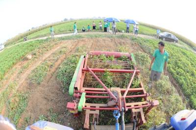 花生种收全程机械化设备在湖北襄阳大田作业成功