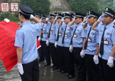 6月1日,十堰市郧县首批校园保安人员在该县教育局正式宣誓就职。28名专职保安,将代替各校的”杂牌”门卫。为确保全县中小学、幼儿园安全,该县将从今年起将每年投入110万元为完全小学以上学校聘请保安。(郧县教育局张俊忠宏摄)