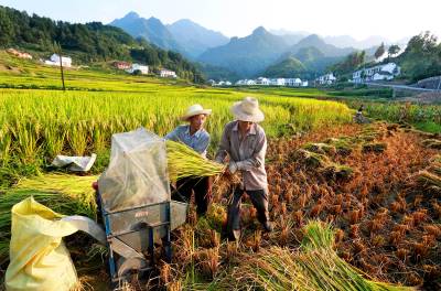 > 竹溪县中峰镇”贡米“稻谷开镰收割