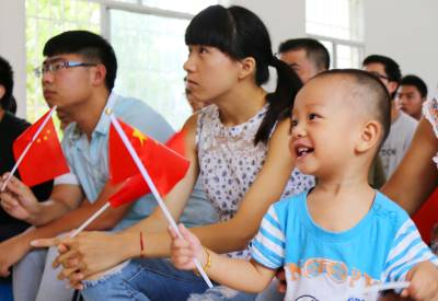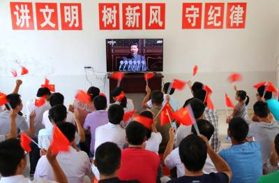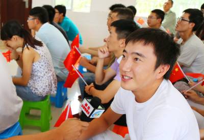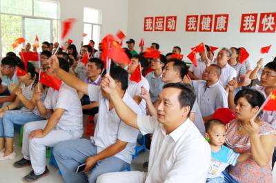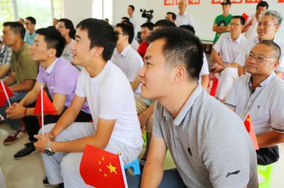 项目部为组织观看阅兵式,专门安装了一台55寸的液晶电视机,制作100面国旗,营造了观看现场的氛围。