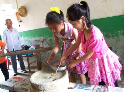 6月2日,武穴市第二实验小学开展走进农村,体验农活活动,学生们来到市郊的刊江泉塘村体验传统的手工磨磨,学生在认识农村,感受农活中,激发了热爱生活的热情。本报视界网刘飞摄