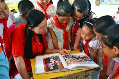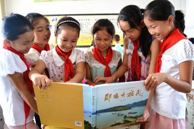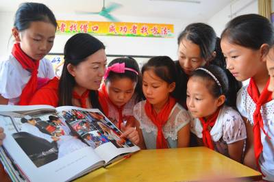 (通讯员 杨显有 杨慧) 9月6日,志愿者老师在指导小学生阅读《郧阳大移民》。当日,湖北省十堰市郧阳区移民局为当地移民学校柳陂镇中心小学送来真实记录了南水北调郧阳大移民移迁全过程的《郧阳大移民》和《为了干渴的北方》等精品光影图册及书籍,并联合昔日移民搬迁的志愿者老师指导小学生阅读,讲述发生的动人故事,让1000余名移民小孩子又一次“体验”那段厚重如山的感人历程,接过“移民精神”传家宝,让爱薪火相传。南水北调中线工程水源区郧阳动迁移民1.4万余户,共计 6万余人。