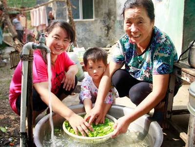 九月初,在汉川市城隍镇段下村,一家三代正用自来水洗菜。该市加大农村安全饮水建设力度,分片整体推进城乡供水一体化。农村用水环境明显改善,农民生活质量得到了提高。