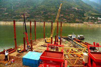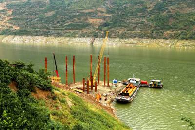 9月7日,三峡库区秭归县香溪河大桥五号桥墩正在加紧施工。据悉,9月10日,三峡库区将启动新一轮175米试验性蓄水,由中铁大桥局第七工程有限公司承建的香溪河大桥属于涉水工程,为此,大桥施工方日夜加班加点,与水位赛跑,全力抢建五号桥墩施工作业平台。