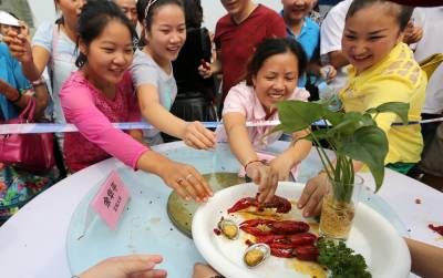 9月8日,宜城市举办“宜城大虾烹饪大赛”,43名宜城大虾名厨现场一展厨艺,争夺“虾王”称号,吸引了众多市民前来品尝。